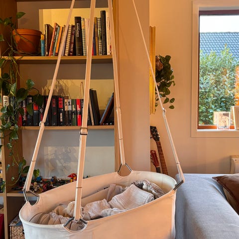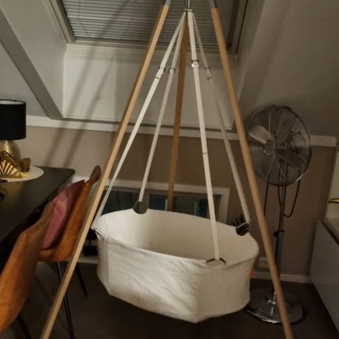 Pent brukt. Har madrass i uten flekker. Henges opp i krok i taket eller man skaffer tilhørende stativ.
