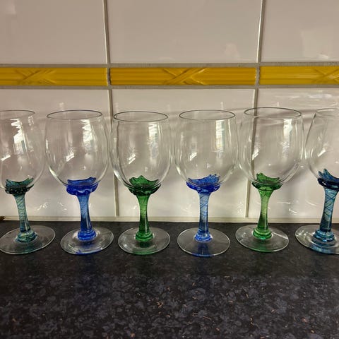 Seks edre vinglass med dekor