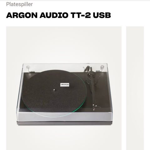 På jakt etter din første platespiller? Eller er "dreven" på vinyl - og på jakte etter god lyd? Her får du mye for pengene. Meget pen Argon Audio TT MK2 kjøpt mars 2025. Kjøpt ny for kr 2998.- på HIFI-klubben i mars 2025 ink kvittering og emballasje. Sender ikke, må hente i Oslo.