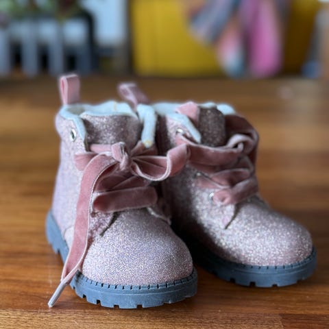 H&M barnesko for jente i størrelse 22. Skoene er hvite med snøring og glidelås for enkel tilpasning.