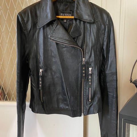 Skinnjakke med nydelig fasong. Veldig mykt skinn. Lite brukt, ingen merker eller skader. Størrelse 38. Vanlig passform.