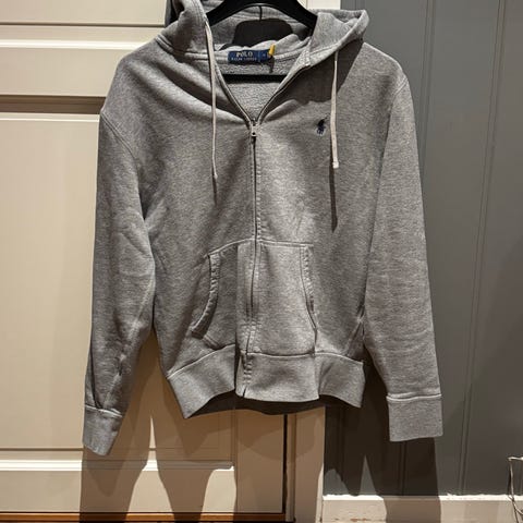 Puma joggedress for menn i størrelse S. Genseren er grå og har glidelås foran, med hette og snøring. Laget i et komfortabelt materiale egnet for hverdagsbruk.