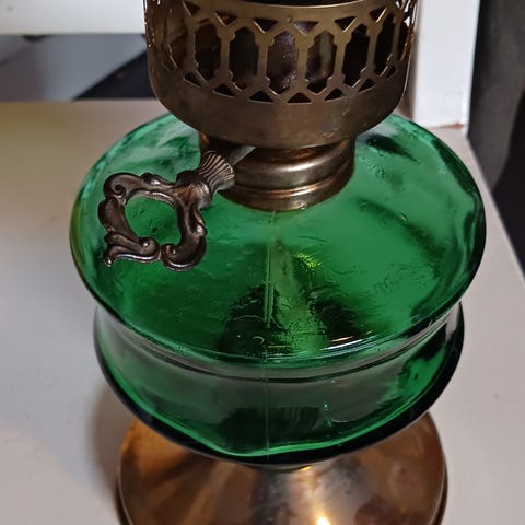 Parafinlamper i ulike former og design. De i glass er pent brukt. Har også to lamper i kobber som trenger en puss.