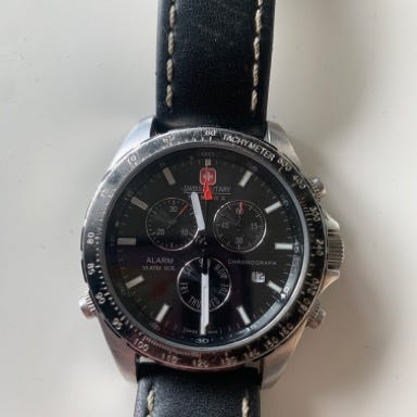 Swiss Military unisex klokke med rustfritt stål lenke og sølvfarget urskive. Klokken har flere funksjoner inkludert kronograf og roterende bezel. Designet for allsidig bruk med en slitesterk konstruksjon.
