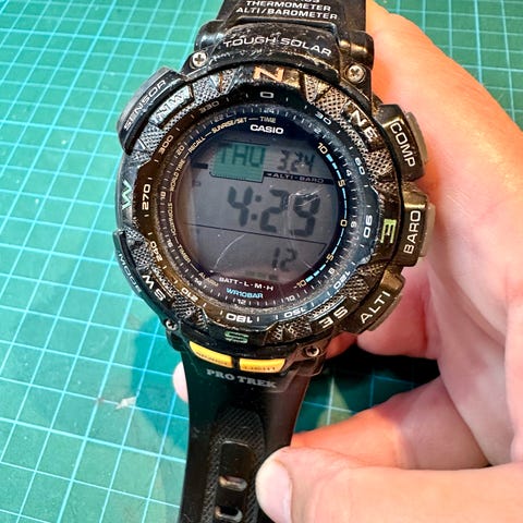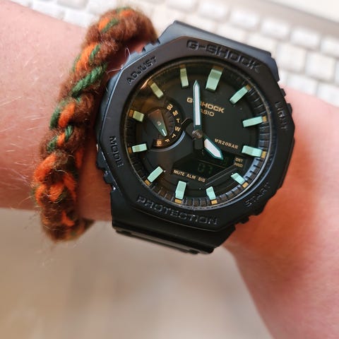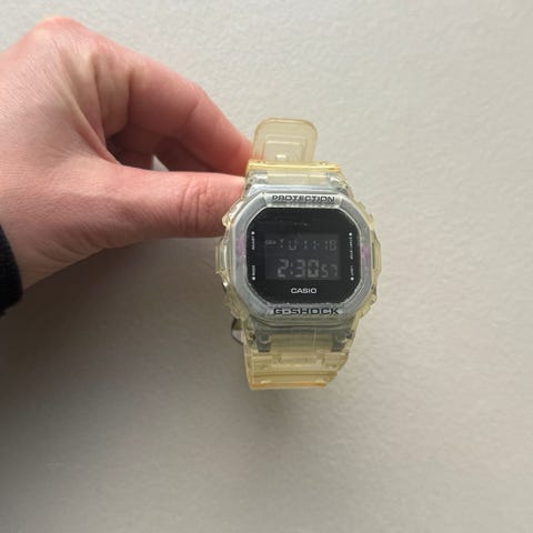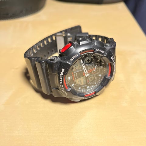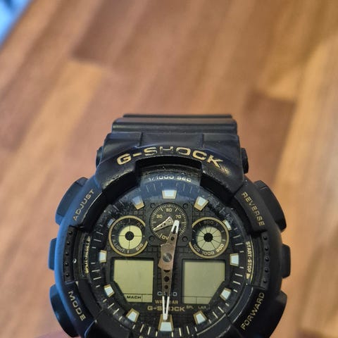 Pent brukt/må ha nytt batteri. Casio G-Shock unisex klokke med svart rem og urskive. Klokken har støtsikker funksjon og digitalt samt analogt display. Egnet for daglig bruk og utendørsaktiviteter.