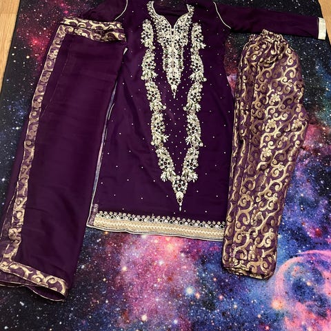 Nydelige broderier på hele drakten.