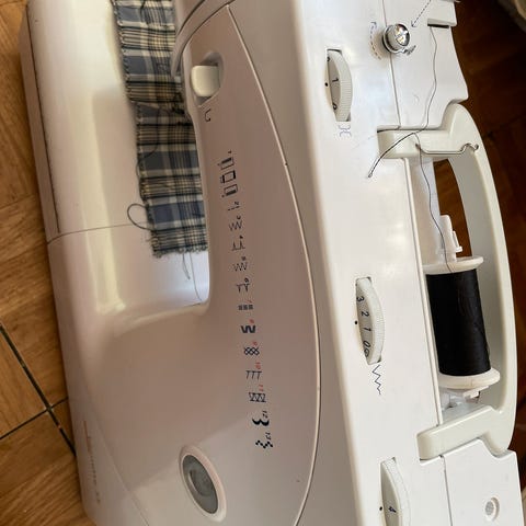 Denne symaskinen er rengjort og smurt opp og virker som den skal, og den lyder slik en symaskin skal gjøre.