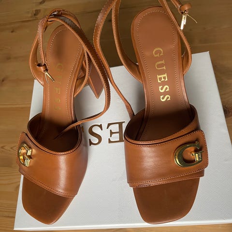 Nydelige gull heler fra Guess selges da de er for store. De er en størrelse 38, men i realiteten en 39. De er kun brukt en gang. Håper noen kan ta de i bruk!