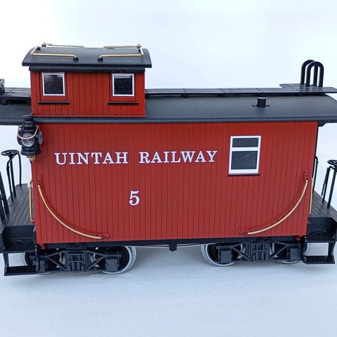 Selger et klassisk LGB togsett i G-skala (Lehmann Gross Bahn) med Lake George & Boulder-design.