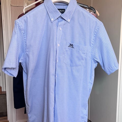 Jean Paul Classic fit skjorte i blå farge, størrelse L for menn. Skjorten har kort erme og er laget i et materiale som er rynkefritt.