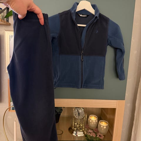 Nydelig varm og god fleece sett for aktive barn. Kan brukes som yttertøy på høstdager og som mellom lag om vinteren. Pent brukt.