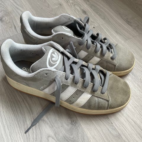 Selger disse grå adidas campus fordi de ikke blir brukt. Kjøpt i fjor sommer og kun brukt noen få ganger. De er pent brukt og har ingen tydlige bruksmerker annet enn at de er litt ‘’nuppete’’ foran på tuppen (se 4 bilde), lissene er også litt møkkete noen få steder, men dette syntes egt ikke. Kjøpt for 1449kr. De er i strl 38 2/3, men jeg er en 38 til vanlig og de passer fint til meg.