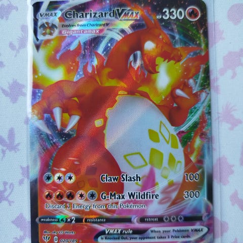 Selger en Charizard VMAX SWSH261 til noe redusert pris pga av noe rart på kanten av kortet(se bilde). Sendes på kjøpers regning.