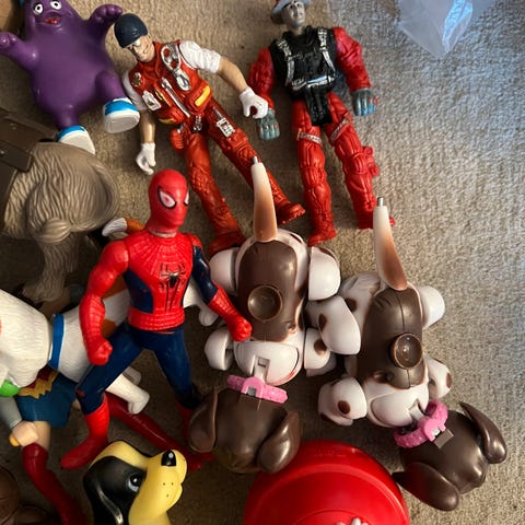 Et sett med "teaterscene" og 4 figurer fra rødhette. Ikke brukt, kun sett på, men bøylen på kurven til rødhette har knekt av. Kan hentes om ønskelig.