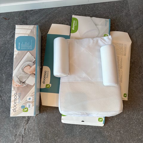 En smal og praktisk liggestøtte fra doomoo. Liggestøtten er myk og lett hellende som en madrasspute, med to sidestøtter for å holde babyen trygt på rygg og forhindre at hen ruller over på magen. Hellende liggestilling anbefales for å forenkle barnets lufttilførsel ved tett nese, oppkast, øreverk, forkjølelse eller andre pusterelaterte infeksjoner, samt forbedrer fordøyelsen