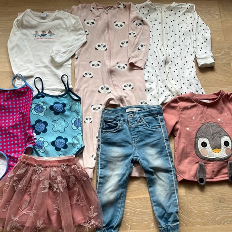 Klespakke i str. .86. Inneholder klær fra Name It, Lindex, H&M. Ingen hull, men anmerkninger kan forekomme.