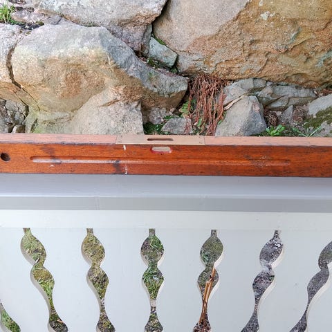 Manuelt stemplingsverktøy med trehåndtak og metallkomponenter. Verktøyet viser tegn på rust og slitasje. Brukes til å stemple eller merke materialer manuelt. Sender gjerne med posten men bruker ikke fiks ferdig