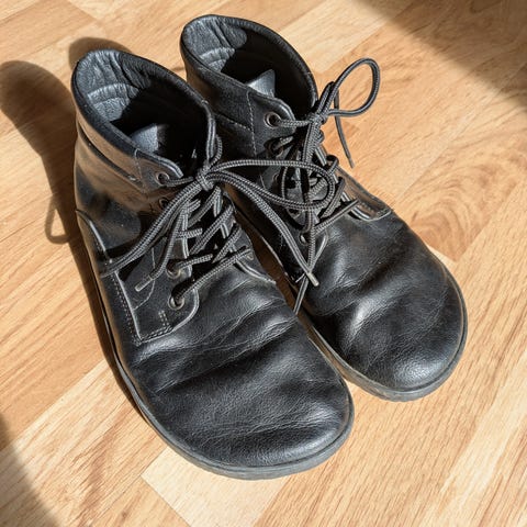 Skoene som er for salg har vært høyt elsket. De har slitasje under på sålen og må derfor repareres. Jeg har forsøkt å reparere dette selv ved å påføre lim og masse for å tetne, uten hell. Selv om jeg tror nok en annen mer hendig person kan klare dette selv. Det anbefales å levere de inn til en kyndig person for formålet. Jeg har ellers gummi såler som kan brukes til dette, samt lim, om så ønsket at man forsøker seg på å sette på ny såle under. Har valgt å overlevere skoene til nye eiere da jeg har sikret meg et ekstra par. De har jeg via separat annonse (tynn sort gummi såle). Denne sko typen er ikke for salg lengre/utgått. Be Lenka Icon. Helårsko; kan brukes hele året rundt. Nye lisser ble satt på i år.