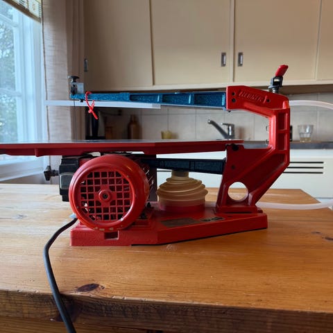 Hegner Multicut 1, en solid og stillegående kontursag (også kalt dekupørsag eller presisjonssag) perfekt til trearbeid, modellbygging, hobbyverksted og alle som trenger detaljerte kutt.