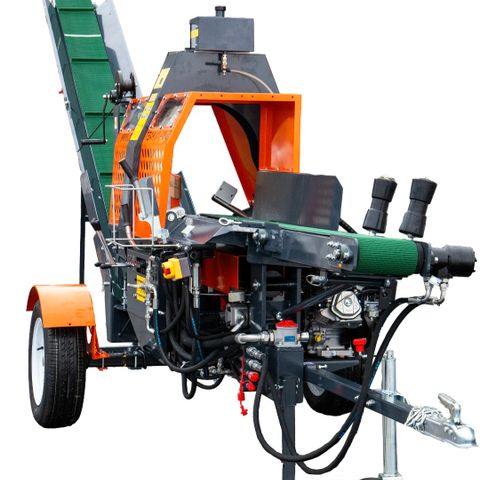 Vedmaskin fra Wee kjøpt ny i sommer, motor har nå gått 13,5 timer kraftig sak på 35 tonn, tar kubber opp til 50cm i diameter. Lengder mellom 25 og 50 cm. Kløyver ”alt" kubber med kvister til og med om kubber havner på tverke, alt kløyves. Alle funksjoner styres med Joystick. innmater, stokkholder, motorsag og kløyving. en liten joystick ved siden av for å justere høyde på 6 deler kløyvekniv. hydraulisk sving på transportbånd.
