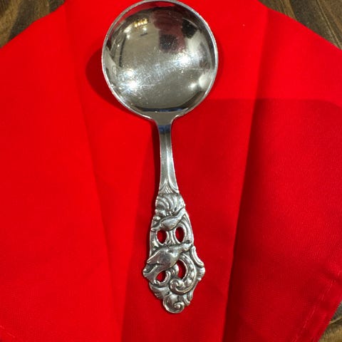 Norge souvenir skje med gravert kartmotiv på håndtaket. Skjeen har detaljert dekorasjon som viser landemerker og teksten 'Norge'. Materialet er 60 gr sølv, og den er egnet som samleobjekt eller dekorasjon. Kan sendes med post nord til 69,-kr