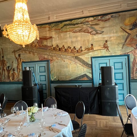Har også 2 flight stående, reloop4 kanal dj controller med koffert m/pc stand, gamle scene lys par-kanner, og esker med div. Boks med masse overganger /tilkoblinger, microfon stativer sorte, lysstativer, mellonstenger for topp subb, div lys bomm. Her får du masse nyttig.