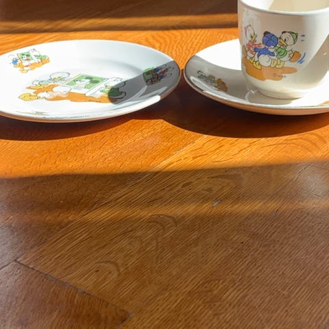 Retro skål fra Stavanger med motiv fra Disney ✨ Donald Duck, Ole, Dole og Doffen som sitter rundt middagsbordet ✨
