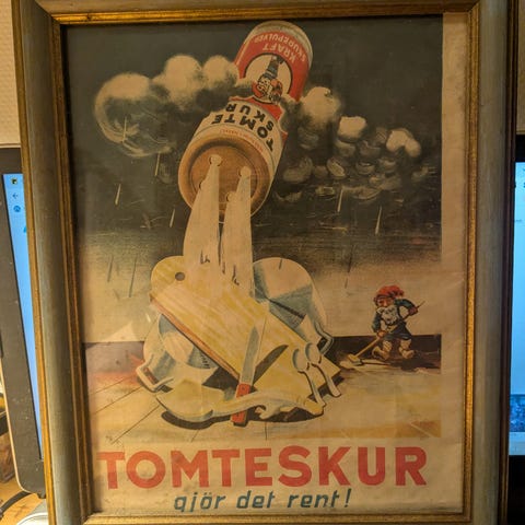 Skilt i metall med reklame for Tomten Vaskepulver.