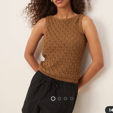 Kjempesøt, lite brukt heklet topp fra junkyard. Kan passe en str M dersom man ønsker en mer tettsittende passform. Kjempefin til hvite bukser.