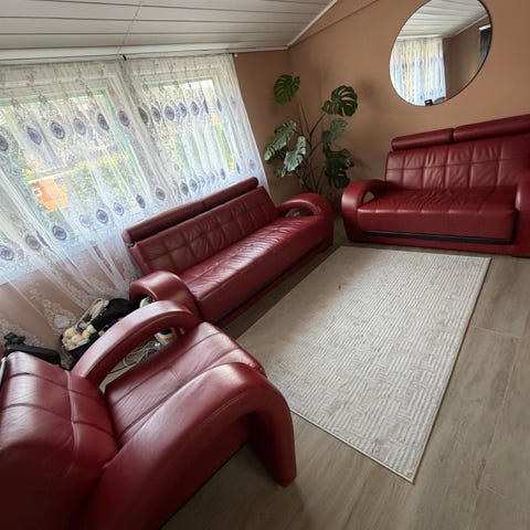 Selger en fin møbel gruppe med bord, stol, sofa og puff med lagring. Hentes snarest grunnet plassmangel. Selges samlet til kr 4.000,-.