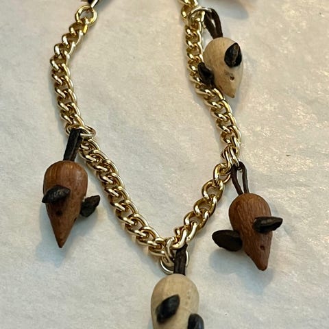 Katt og mus gull brosje