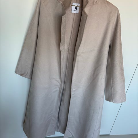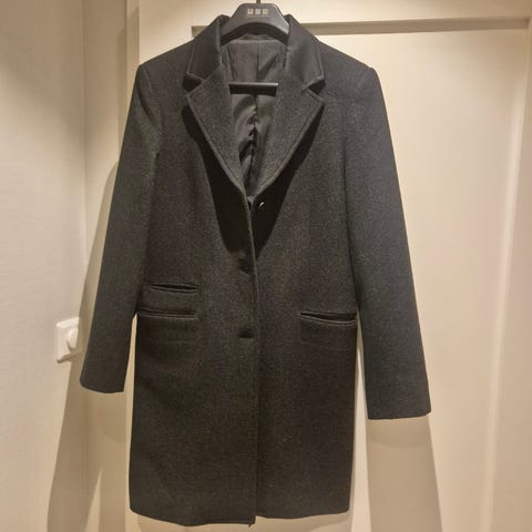 Grå damefrakk i størrelse S. Frakken har knappelukking foran og sidelommer. Materialet fremstår som tykkere og egnet for kaldere vær. Enkel og klassisk design.