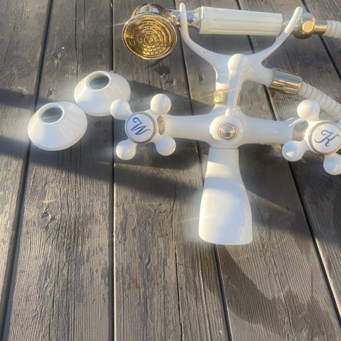 Denne kjøkkenkranen har et kromfinish og to separate håndtak for varmt og kaldt vann. Den har en høy buet tut og kobberrør for tilkobling. Passer til kjøkkeninstallasjon med standard monteringskrav.