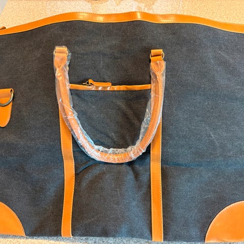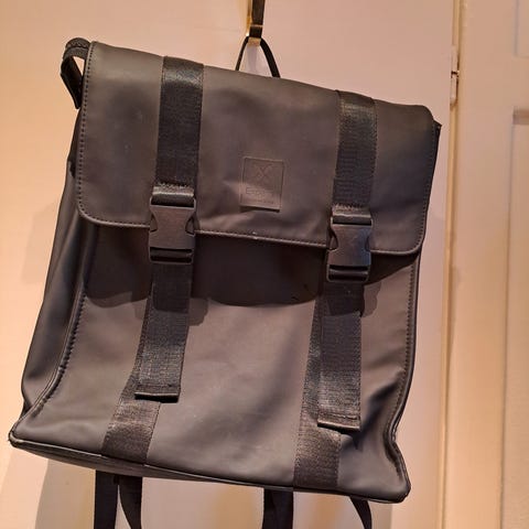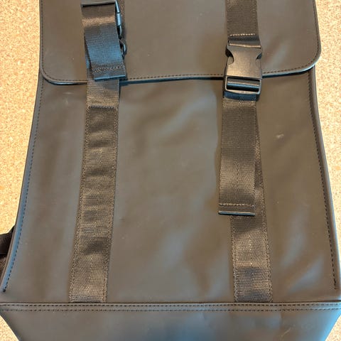 Kan bæres som en veske også med de ekstra håndtaker. Kommer i et mykt og vannavvisende materiale, og er smidig å pakke og bære.