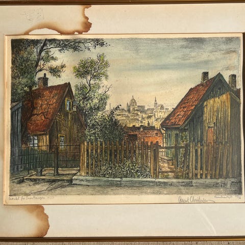 8. Påskrift: UDSIGT TIL GAARDSRUMMET I HANDLENDE MADAME WERNERS GAARD, KIRKEGADEN 22 Arne Johnson, 1965 103/300 VI