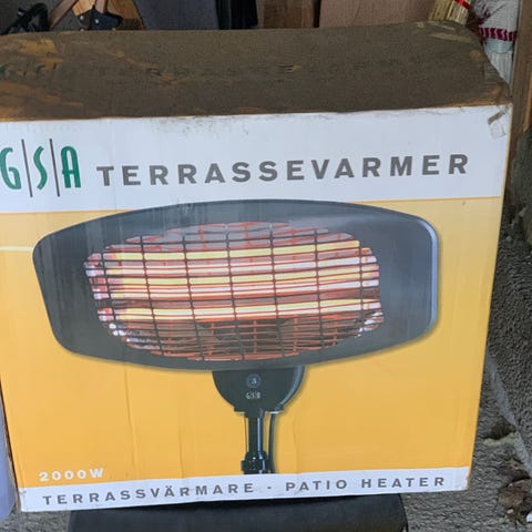 Selger en terrassevarmer kjøpt hos Clas Ohlson. Den er kun brukt én til to ganger, og fremstår som nesten ny med original eske og bruksanvisning.