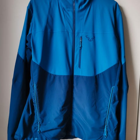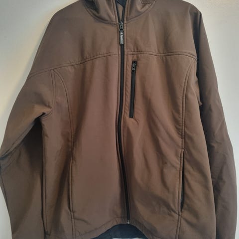 Flott vindtett og vanntett fritidsjakke med i materiale som puster og fleece for. Fargen er mørkeblå og størrelsen L. Glidelås lukking i front og i krage med innsydd hette. Jakken har tre ytterlommer og en liten lomme på ene ermet, alle med glidelås. Den har også 3 innerlommer, hvorav en med glidelås. Jakken har fine detaljer med innsydd refleks foran, bak og på ermer. Det er kun foret som har noen få tegn på bruk, ellers fremstår plagget som nytt. Kan sendes.