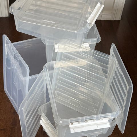 Oppbevaringskasser de fleste m/lokk div størrelser, pris er pr stk ca halv pris av nye