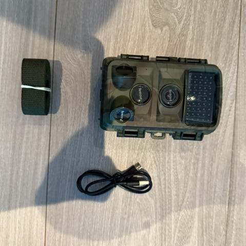 Kameraet har vært brukt noen få ganger på hytta. Topp stand gir klare gode bilder i farger. Antenne, festereim og bruksanvisning medfølger. Her får du bildene dine på mms/sms/ eller email direkte fra kameraet. om du ønsker Minnekort på 8 GB medfølger Simkort ordner du selv. Plass til 6 AA batterier