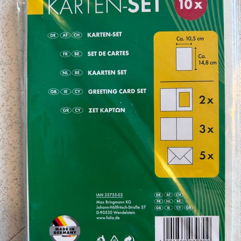•Svarte ensfargede mappekort med tilhørende konvolutt x 10 stk