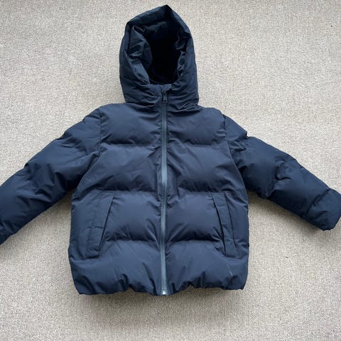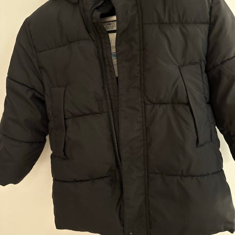 Kan brukes fra 122-134. Pent brukt men hempen til å henge den opp er ødelagt, samt ene lommen er d rift inni. Ingenting å si for bruken av jakken .