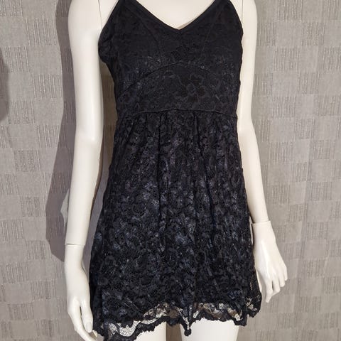 Elegant sort nattkjole med blonde – Str. SXS/S