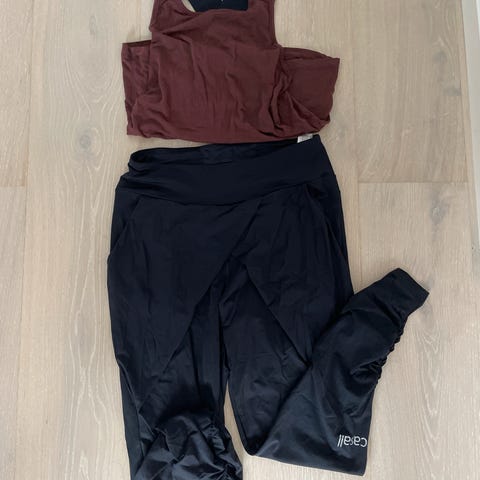 Brukt et par ganger, men ble for trangt. BH i XS og tights i S