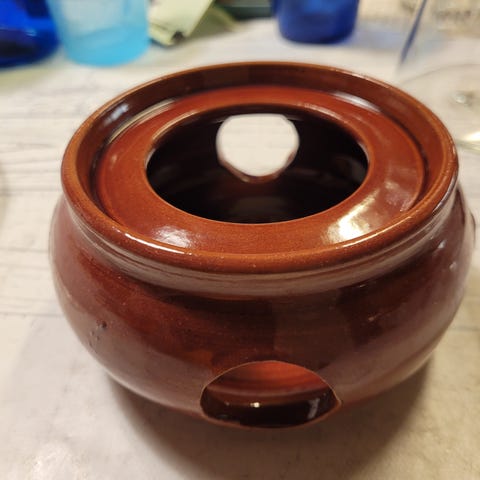 Brun keramikk lysholder 8x10cm.