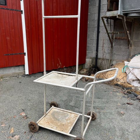 Transportvogn for mjølk/kalvedrikke. Med ventil for enkel fylling i bøtter o.l. Vogna er i rustfritt stål. Den er i god stand. Dekka er ok, men bør bytast snart. Sender ikkje.