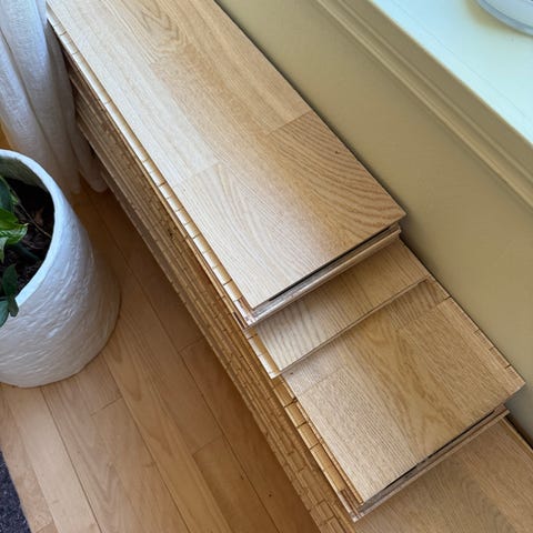 Har 4 ubrukte pakker av dette gulvet, ble bestilt for mye ifm gulvlegging i hus. Totalt 10,7 kvm.
