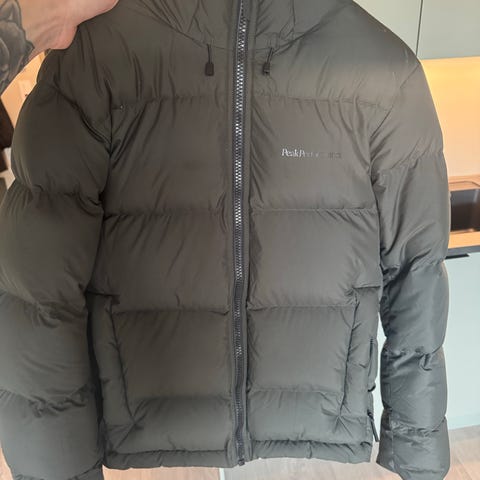 Peak Performance Vinterjakke i størrelse L for herre. Jakken er svart og designet for utendørs bruk i vinterforhold. Den har hette og glidelås foran, samt isolasjon som gir varme. Jakken passer til kalde værforhold og har lommer for oppbevaring.