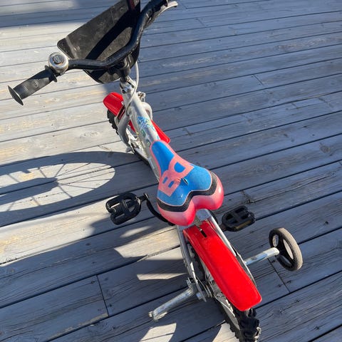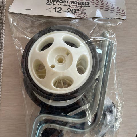 Ubrukt støtte til barnesykkel 12-20". Kun forsøkt montert på sykkel, men den passet ikke helt.