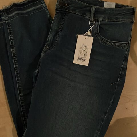 Zizzi Long Pants bukser i blå farge, størrelse 46/48 for kvinner. Laget av polyester og elastan, med elastisk midje og lommer. Passer til hverdagsbruk og gir komfortabel passform.