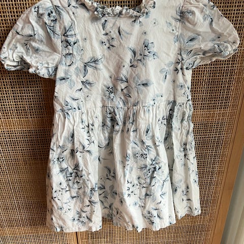 Pent brukt kjole med tilhørende pannebånd/sløyfe. Brukt noen få ganger. Veldig søt. Kjøpt ny av oss, og brukt til ett barn.